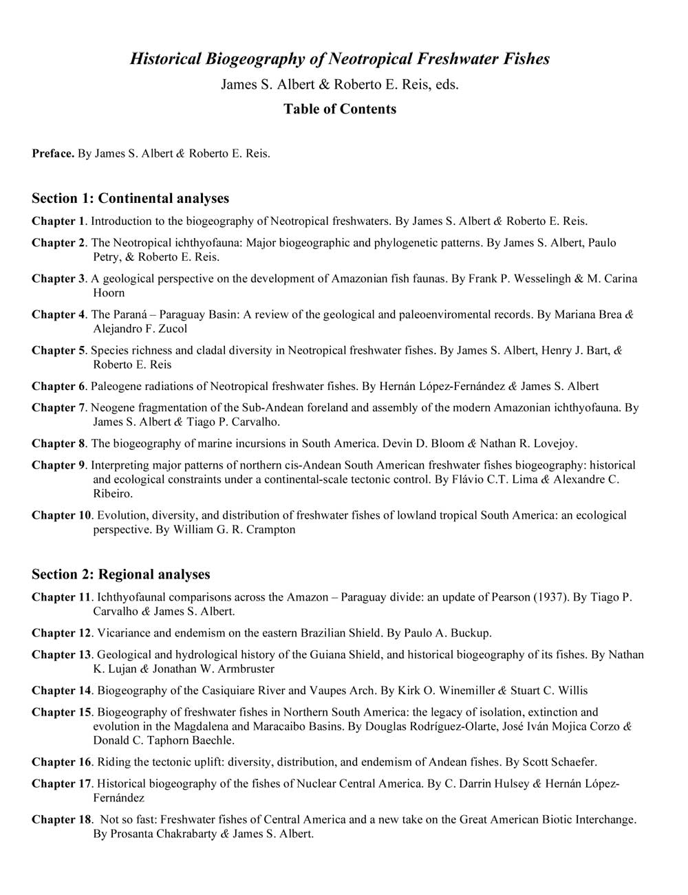 What are the evolutionary forces underlying the formation of highly diverse tropical aquatic ecosystems? The Neotropics encompasses one of the greatest concentrations of organic diversity on Earth. In many groups of plants and animals, species richness reaches a zenith in the Neotropical rainforests. This is true for many groups of vascular plants, aquatic macrophytes, frogs, birds and mammals. The species richness of Neotropical freshwaters fishes in particular is unparalleled, which with more than 7,000 species represents a majority of the world’s freshwater fishes, and perhaps 10% of all known vertebrate species. Any general understanding of vertebrate evolution must therefore address the spectacular evolutionary radiations of Neotropical fishes. Historical biogeography is the study of animal distributions emphasiszing evolution and over evolutionary time scales, and using a combination of phylogenetic and distributional information. From a macroevolutionary perspective, net rates of diversification within a geographic region arise from differential rates of speciation, extinction and immigration. Although the precise mechanisms of these processes remain incompletely understood for most biotas, it clear that evolutionary diversification takes place in both space and time. That is to say, biodiversity, biogeography and paleontology are intimately related subjects. Understanding biodiversity therefore requires study of all the clades that constitute a regional biota, through the full extent of their geographic ranges, and for the entirety of their durations through geological time. A complete understanding of Neotropical freshwater biodiversity therefore requires accurate information from many fields, employing data, concepts and methods from taxonomy, phylogenetics, biogeography, ecology, behavior, natural history, paleontology, and geology. This then is the full provenance of the study of Historical Biogeography.