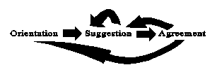 Table 2 presents the results of performing the measure just described on the oral and electronic interactions. The proportions therefore reflect the average (and standard deviation) per discourse of events that conform to the routine in Figure 5. Since conforming to the model is less and less likely as more functions are linked in sequence, it is not surprising that the proportions decrease as the order of the Markov analysis increases. Still, it is encouraging that the proportions of routine continuations in the 1st-order analyses are approximately equal to the proportions of suggestions in the two types of interactions, which suggests that nearly every utterance that could participate in a routine like the one in Figure 5 does participate in at least one routine continuation. It is also impressive that the proportion does not decrease nearly as dramatically in the computer-mediated condition under the more stringent 2nd-order analysis.